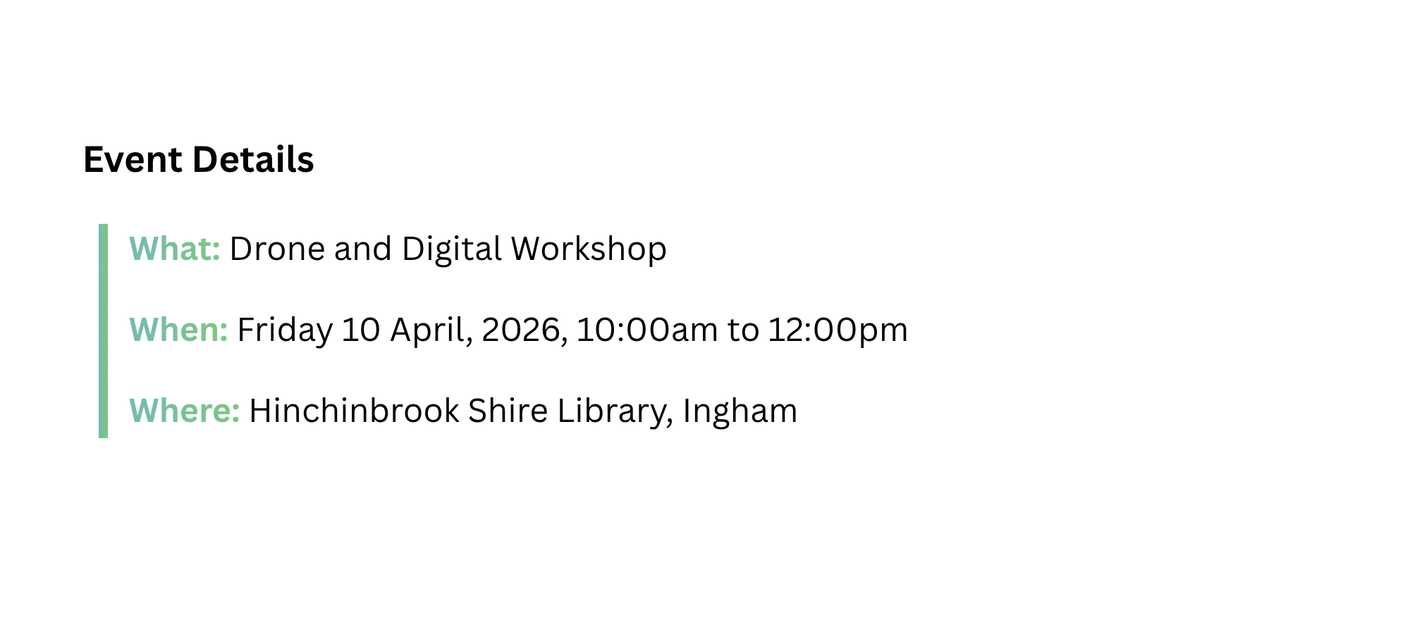 The workshop is free to attend and aims to provide regional students with access to high‑quality STEM learning opportunities. The session will run from 10:00am to 12:00pm on 10 April 2026.