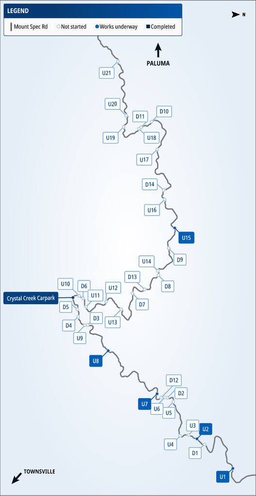 Over the past month, you may have noticed crews working on steep sections of the road, including specialists abseiling down damaged upslopes to carry out reconstruction works. Here's what’s happening at each location as works move through the reconstruction phase to restore the road to its pre-event function.