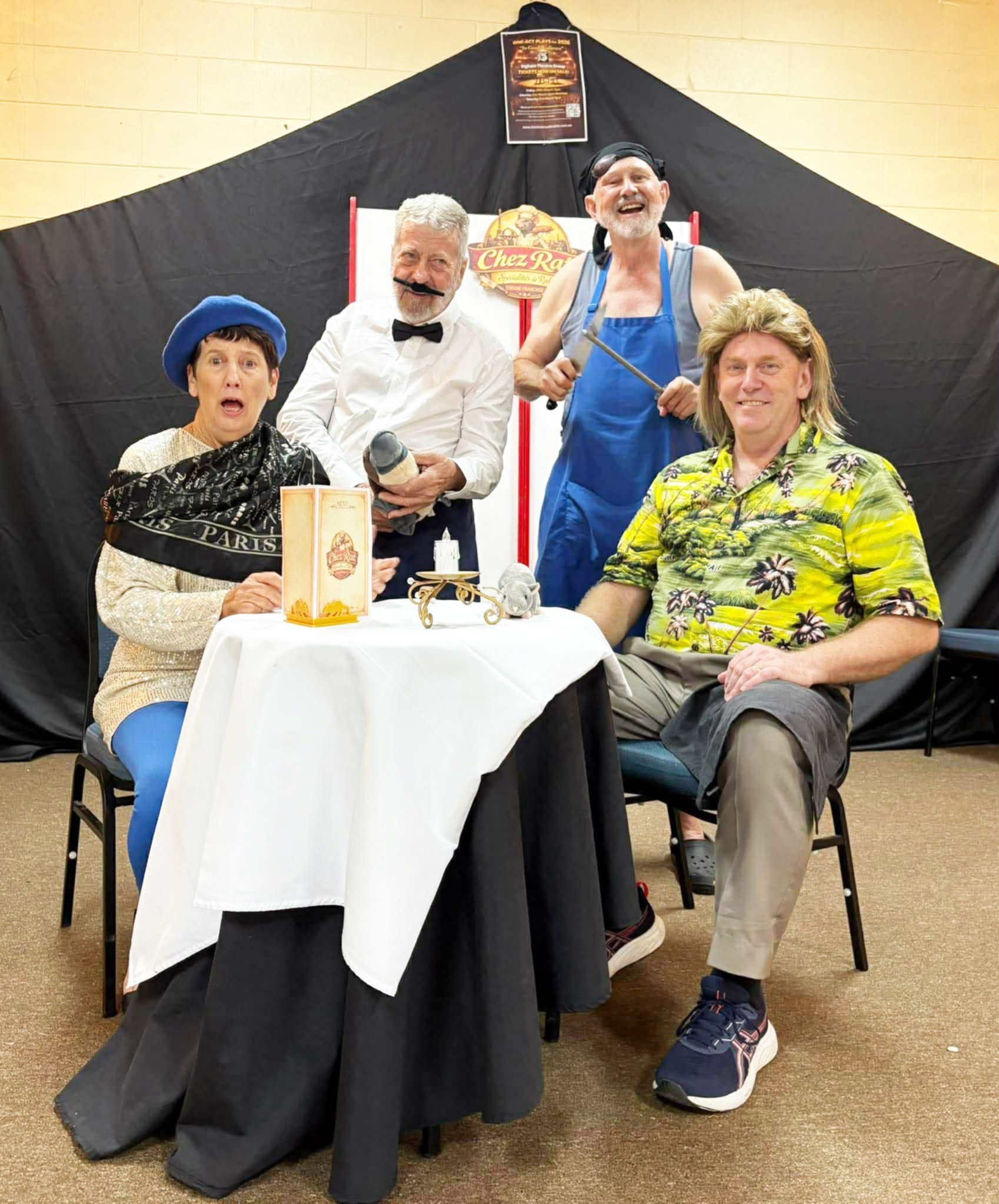 As a result of the Kelly Theatre being unavailable following severe damage from last year’s flood event, the Groups yearly One Act Play performance, had to be shifted to a new venue. The hall at Forrest Beach provided the ideal place for community theatre, and the staging of the yearly performance. We could not have chosen a better place!